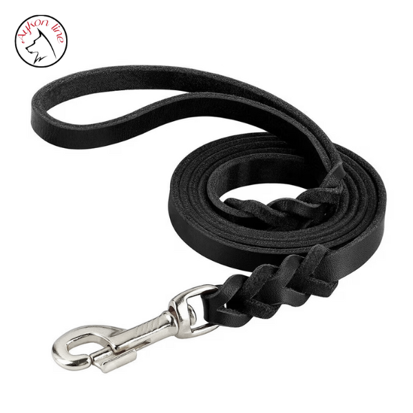K9 Aykon Line Kožni crni povodac – hrom karabinjer