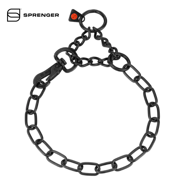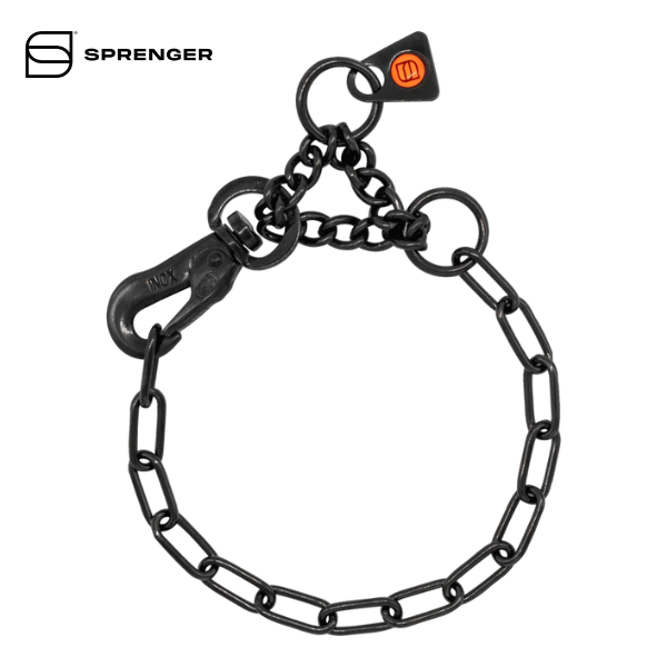 HS Sprenger lančana davilica sa karabinjerom dugi članci – Crni Inox – 31cm x 2 mm